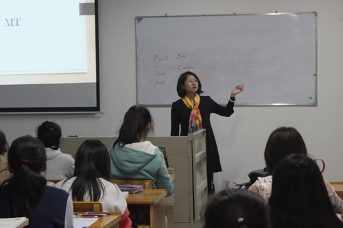 永利官网于2015年10月9日晚7点在11609举办了题为《信息技术在翻译中的应用》讲座,主讲人为永利官网周海燕老师,二、三年级本科生认真听取了本次讲座。