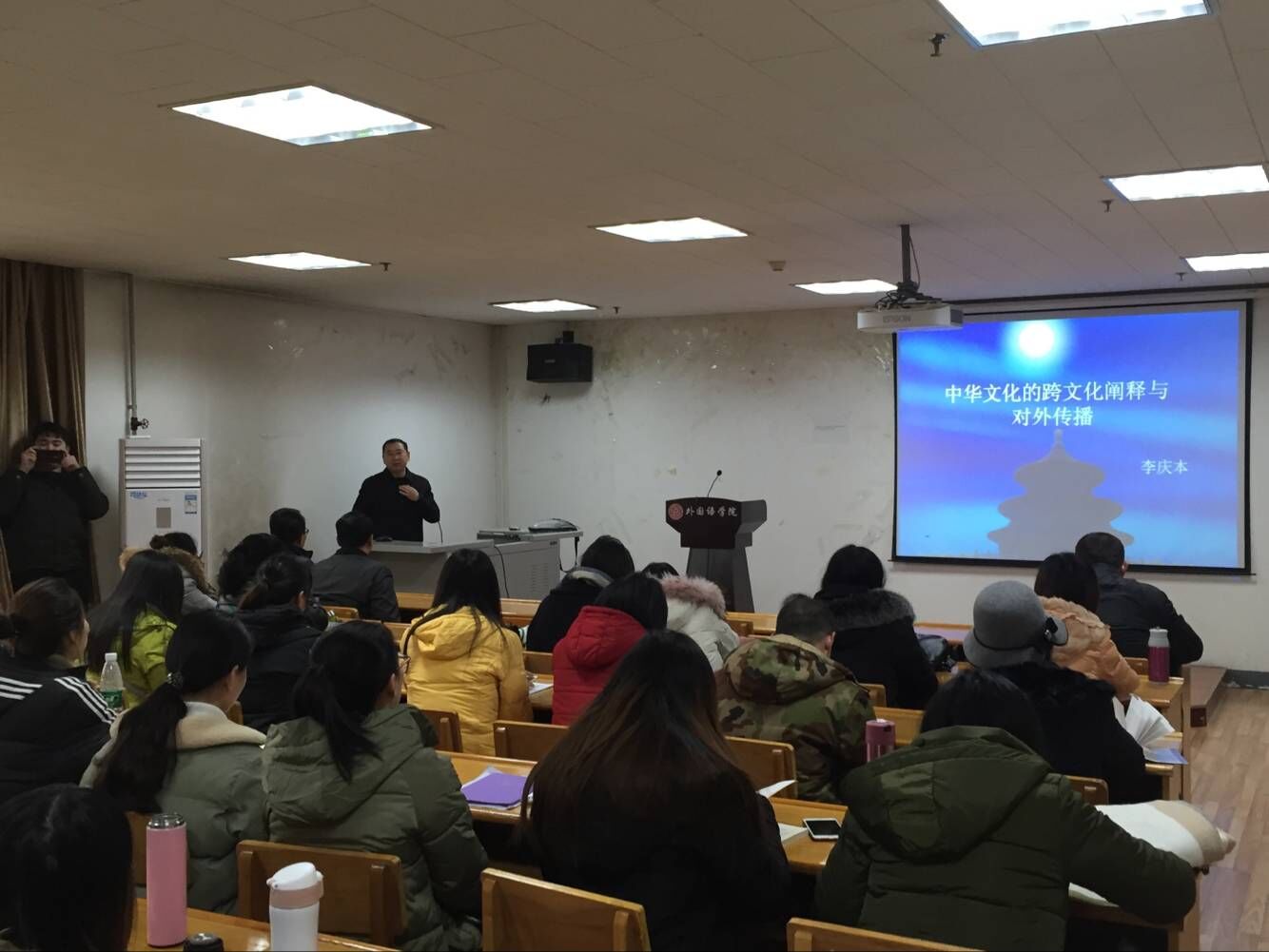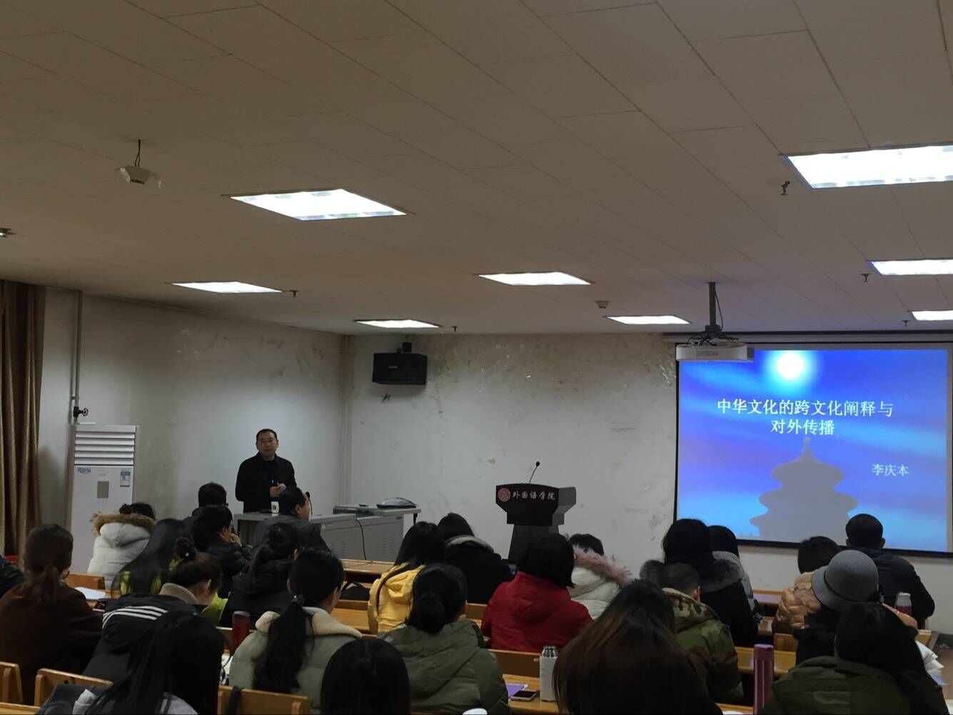 首先,李教授开门见山的给出了文化的定义,并引起听者思考何为文化;接着谈到文化与翻译的内在紧密联系,以此为线索回溯了古今文化的嬗变,进而上升到了古今与中外文化的文化认同,探讨了文化认同的重要性。又从文化认同的角度出发阐述跨文化传播,尤其是中国传统文化的对外传播。更让我们领略到了李教授在跨文化阐释学上的独到见解。讲座内容层层递进,深入浅出,有理有据的论述方式引人入胜。