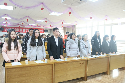 首先,主持人王梦茹介绍本次大会流程并宣布大会开始。会议议程第一项,全体起立,奏唱国歌。紧接着,上一届团委学生会主席15级徐源(2016.11.26—2017.12.29任职)进行工作汇报,对过去一年所有学生会成员的工作给予肯定,同时也分享了自己的工作经验,她相信新一届的学生会干部定会将学生会建设得更好。之后,院党委副书记柴文晖指出,学生干部都是德才兼备的优秀学生,当选学生会干部后要增强“四个意识”,继续完善提高自己、准确定位、引导同学和服务同学。会议议程下一项,黎超宣读新一届学生会干部名单。她指出新一届团委学生会干部要不忘自己的初心和使命,尽职尽责,继续努力工作。随后,新一届学生会主席杨方誉与团委郭青发言,对今后学生会和团委工作提出了自己的构想和计划,表达了努力工作的决心和信心。接下来,历史学院学生会主席尚祖超和校学生会主席赵君如上台发言,他们肯定了上一年度永利官网学生会的工作,并对新一届院学生会干部就职表示祝贺,希望学院之间可以多加强合作和交流。会议最后,新一届学生会干部进行就职宣誓。黎超总结到,在今后的工作中,大家一是要相互配合,共同努力;二是要协调好学习和工作之间的关系,做一个能力强、素质高的优秀学生干部,使永利官网学生会建设再上一个新台阶。