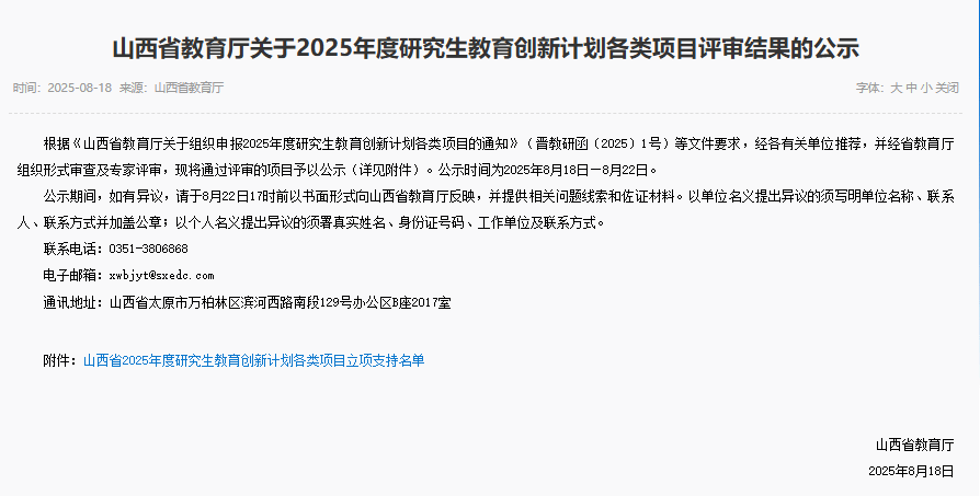 根据《山西省教育厅关于组织申报2025年度研究生教育创新计划各类项目的通知》要求,经各单位推荐、教育厅组织形式审查及专家评审,2025年度研究生教育创新计划各类项目拟立项名单于8月18日正式公示。永利官网在此次申报中取得优异成绩:黄远鹏教师团队申报的《人工智能时代“新师范”翻译人才培养改革实践—构建“技术赋能+参考译文对标”双轨教学模式》项目成功入选;英语研究生武姨虹和朝鲜语研究生韩欣彤分别申报的《21世纪美国族裔戏剧文化共同体研究》和《基于社交媒体的山西民俗文化在韩推广策略》两个项目也获得立项。这些项目的成功立项既彰显了学院在创新人才培养方面的显著成效,也为后续深化研究生教育改革提供了实践范式。