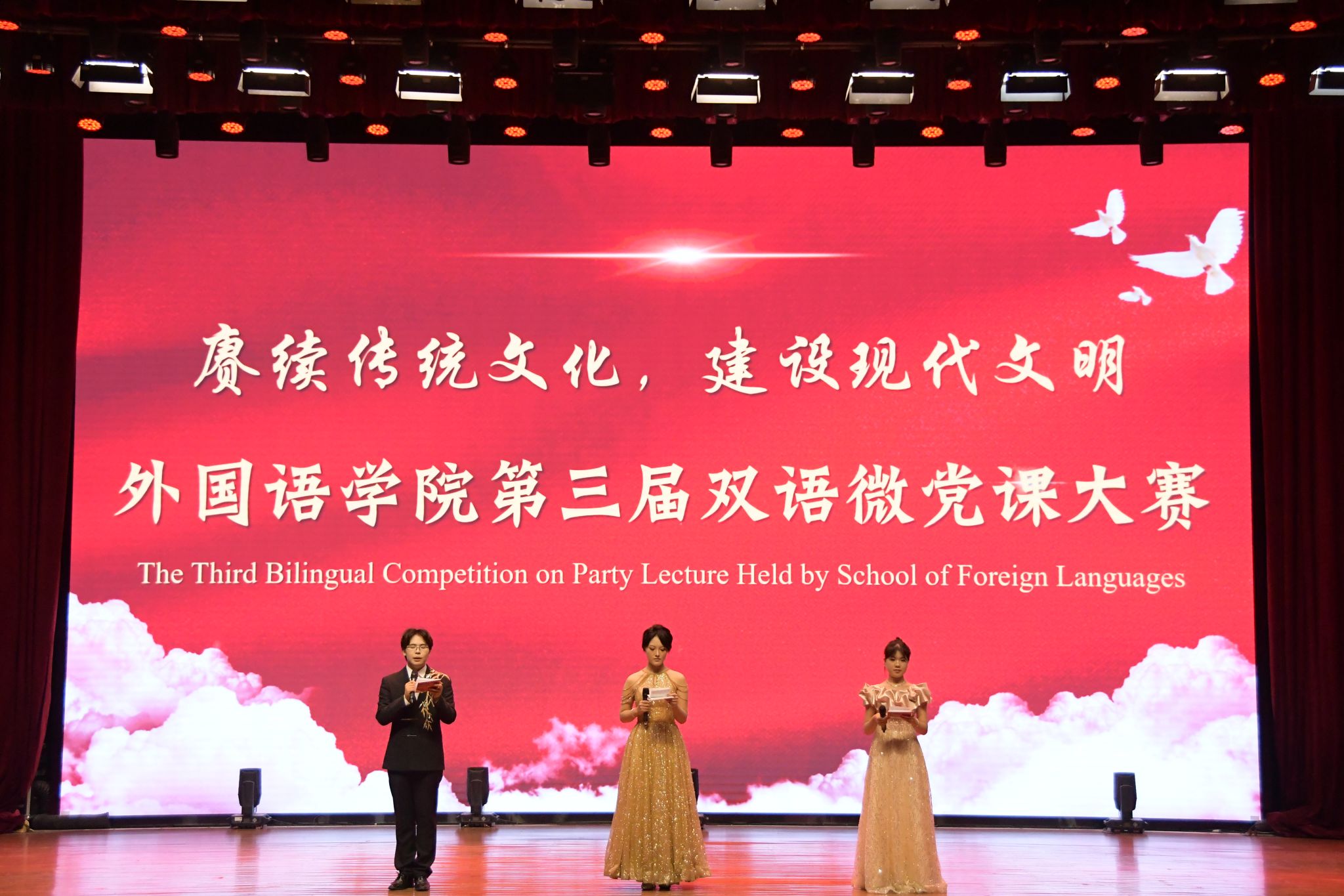 为深入挖掘中华优秀传统文化的时代内涵,引领广大青年用习近平新时代中国特色社会主义思想武装头脑,9月28日,yl23455永利官网在南区科学会堂报告厅举办“赓续传统文化,建设现代文明”第三届双语微党课大赛。
