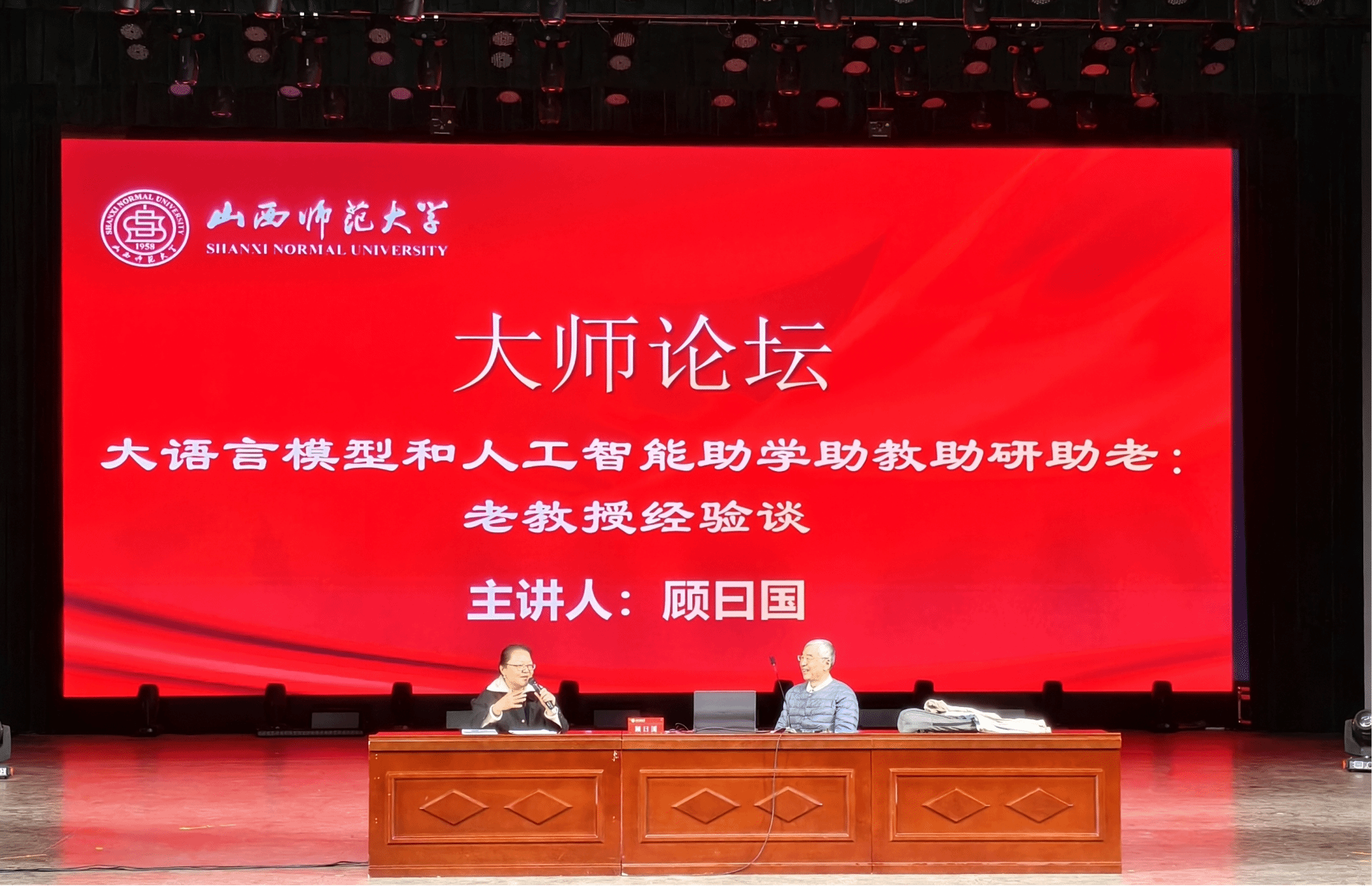 2025 年 10 月 17 日上午,yl23455永利官网在北区文化艺术活动中心成功举办大师论坛。本次论坛以“大语言模型和人工智能助学助教助研助老:老教授经验谈”为主题,特邀北京外国语大学顾曰国教授主讲,学院院长李楠主持,各专业师生齐聚现场,共同沉浸在浓厚的学术交流氛围中。