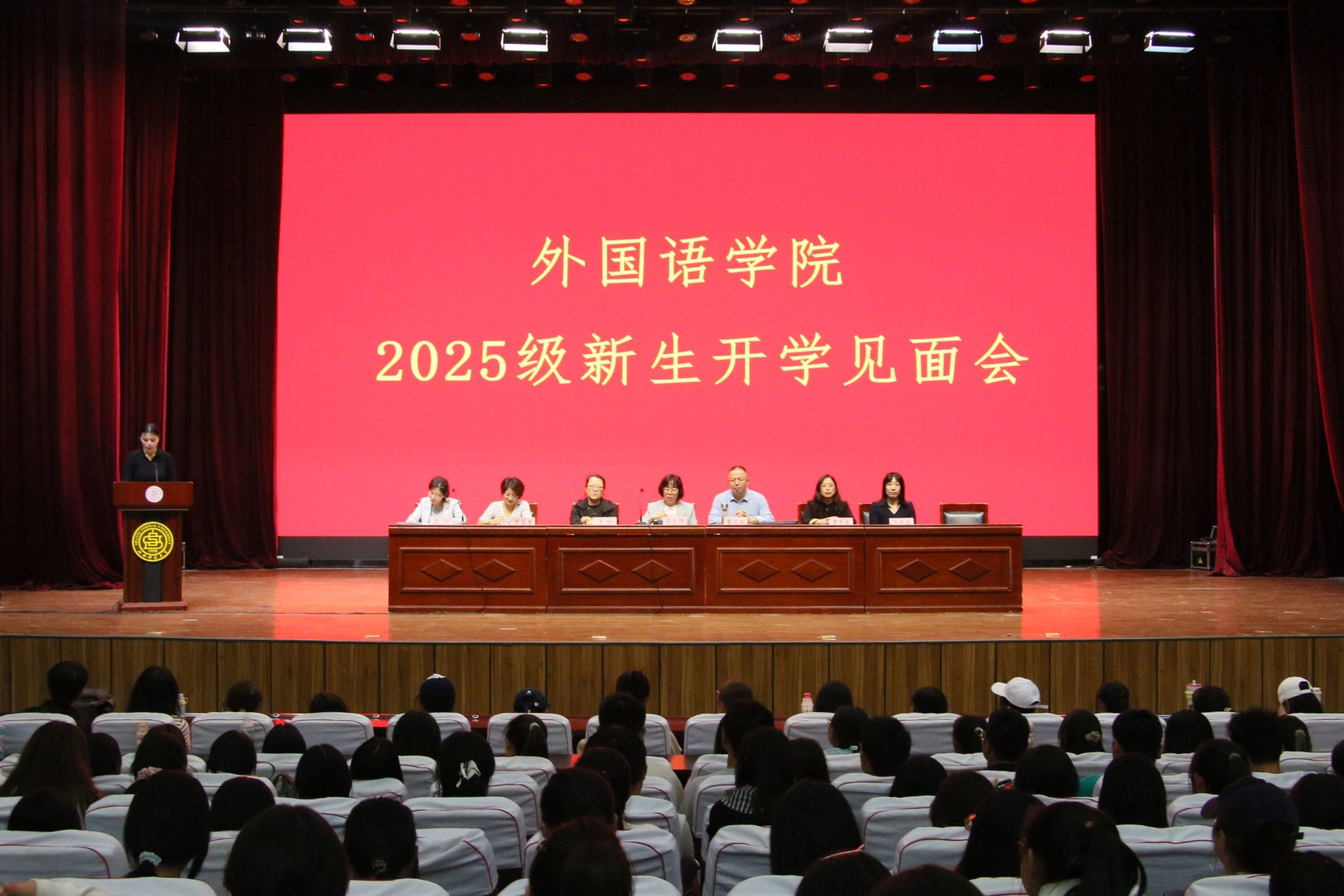 9月25日,yl23455永利官网在南区科学会堂报告厅召开2025级新生见面会,院党委书记柴文晖、院长李楠、副院长黄远鹏、副院长周海燕、日语系主任李冬翠、日语系副主任张秀娟及新生辅导员出席。见面会由院团委书记黎超主持。