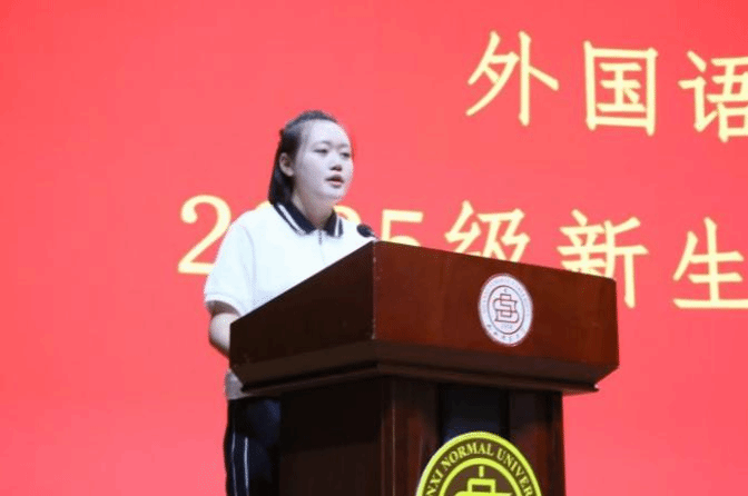 新生见面会在肃穆的国歌声中拉开帷幕。黄远鹏代表全体师生员工向2025级新同学表示热烈欢迎,勉励同学们要坚定理想信念、夯实专业基础,争做德才兼备的高素质师范人才。随后,22级田雅帆等三位学生代表依次发言,她们既分享了成长实践中的感悟思考,也表达了对新学期的美好憧憬,传递出昂扬向上的青春宣言。教师代表吉许婧从教学实践出发,强调了在大学期间转变学习思维的重要性,指出应以探索式学习激发内生动力。最后,院长李楠寄语全体新生,希望大家保持探索热情与创造活力,在求学路上行稳致远,展现出外语人的精神锋芒。