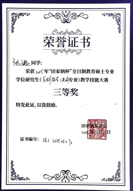 永利官网2024级学科教学(英语)专业研究生张璐同学(指导教师:王嵘老师),在强手如林的角逐中沉着应战,最终荣获三等奖。这份荣誉不仅是个人勤学苦练的成果,更集中彰显了永利官网研究生教育教学的扎实成效与人才培养的过硬质量。